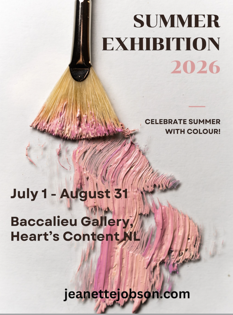 The Baccalieu Gallery will be holding a summer exhibition this season. Artists are invited to indicate their interest in participating by emailing up to three images of their work to admin@jeanettejobson.com by June 1st.
